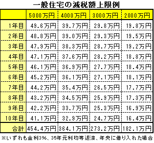 下表にあるように、借入額3000万円の場合、1年目の年末残高が約2980万円とすれば、その1%の29万8千円が上限。これ以上の税金を払っている人なら、それが減税額になります。